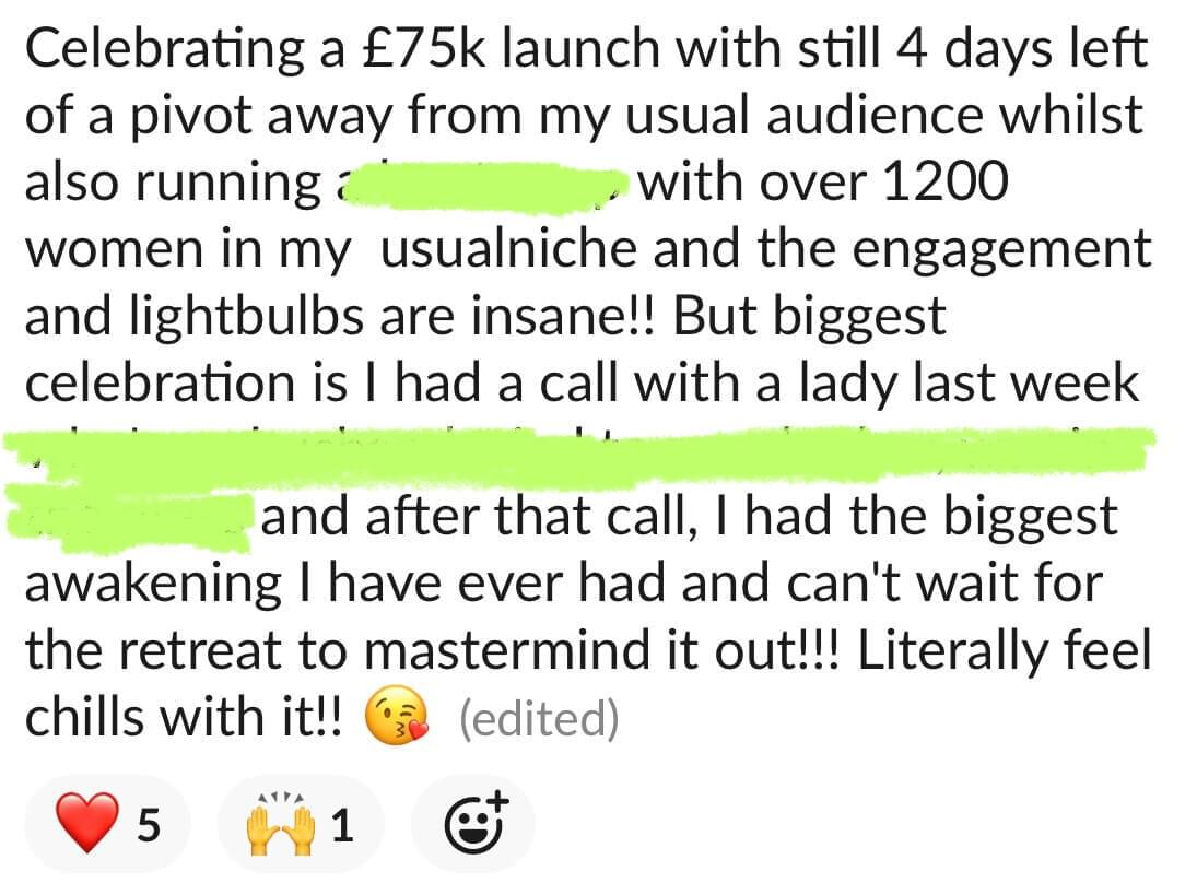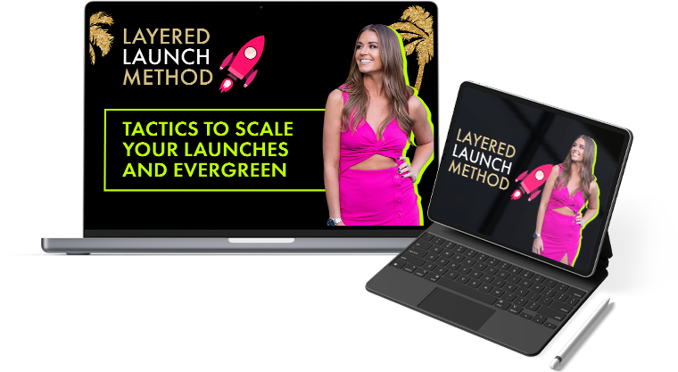 She has built a multi-million dollar business using the layered launch method and mastered launching from masterclasses, challenges, paid workshops, and live events and selling millions of dollars of programs on evergreen too.